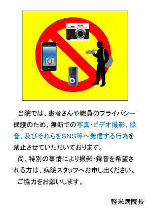 院内での撮影・録画・録音は原則として禁止させていただきます。